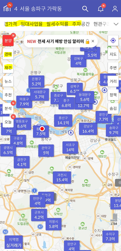 단, 실제 호가나 실거래 가격은 나중에 반영되므로 후보군을 정하면 네이버지도로 검색하는게 좋다.