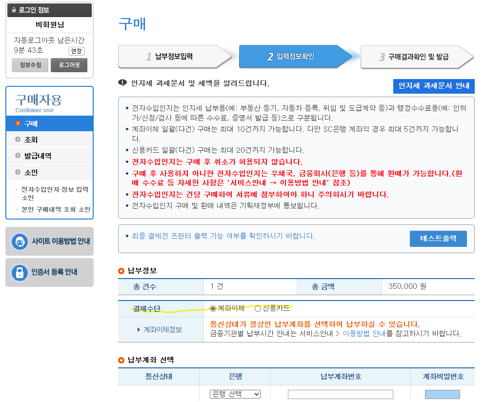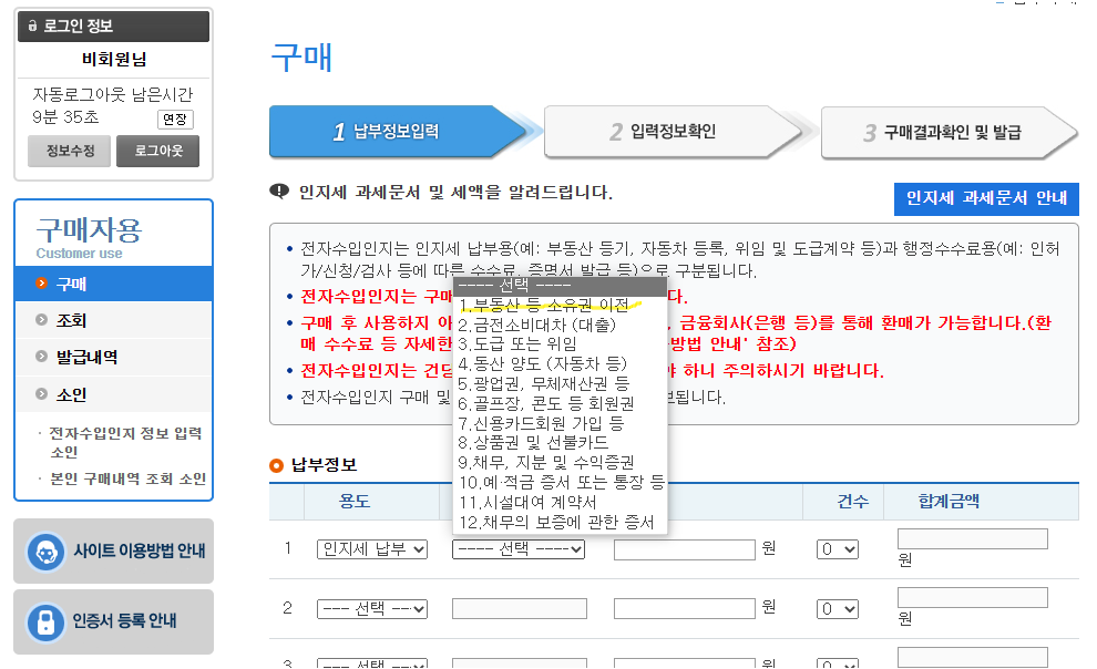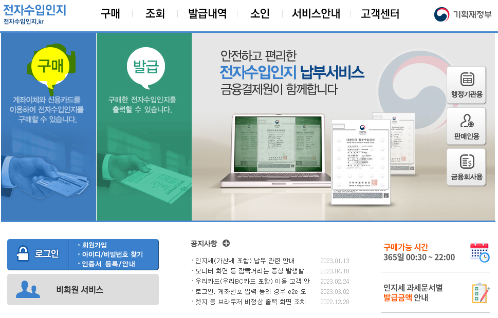 ⓐ 사이트 접속 : 전자수입인지 (e-revenuestamp.or.kr)
