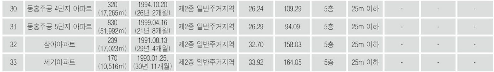 위 고시를 통해 33개의 정비예정구역 지정가능 (정비구역으로 지정된 것은 아니다) 아파트 목록을 공개했고, 위의 고시를 통해 아래 아파트들은 부동산침체기임에도 22년 대비 상승하는 추세다.