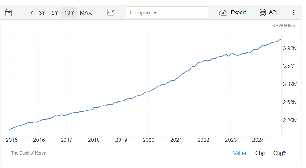 9. 또한 시장의 유동성 또한 금리에 영향을 주는데, 국내 M2유동성은 지속적으로 상승하는 추세임