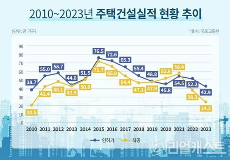 특히 22년을 기점으로 인플레이션에서 기인한 높은 공사비, 주택시장 침체 로 경제성을 확보하지 못한 재건축/재개발 사업장의 사업 부진으로 인해 지속적으로 공급 부족이 예상된다.