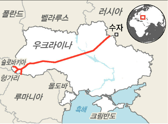11. 계약 만료된 파이프라인은 우크라이나 군 통제속에 있는 러시아 영토(수자)를 통과하며, 헝가리/슬로바키아/루마니아에 가스를 공급해왔음