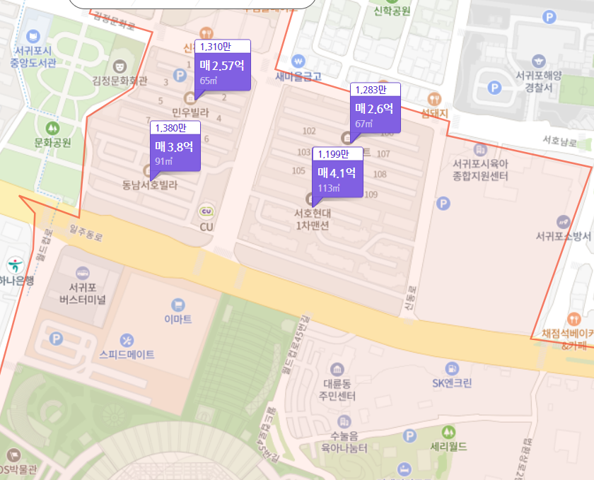 2. 서귀포터미널 앞 재건축 예정 단지들 (서호맨션, 동남서호빌라, 삼주아파트)