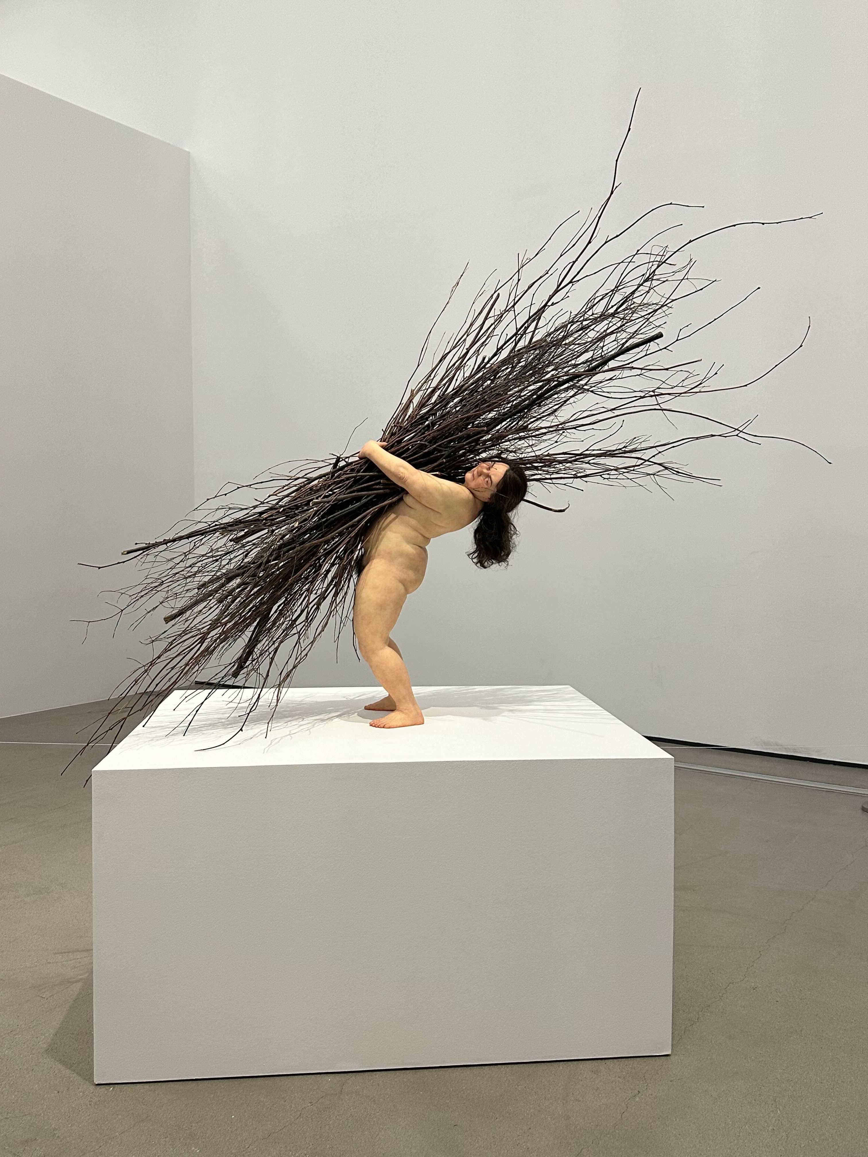 나무 막대를 들고 있는 여성의 모습을 통해 인간의 노동과 삶의 무게를 상징적으로 나타낸다.