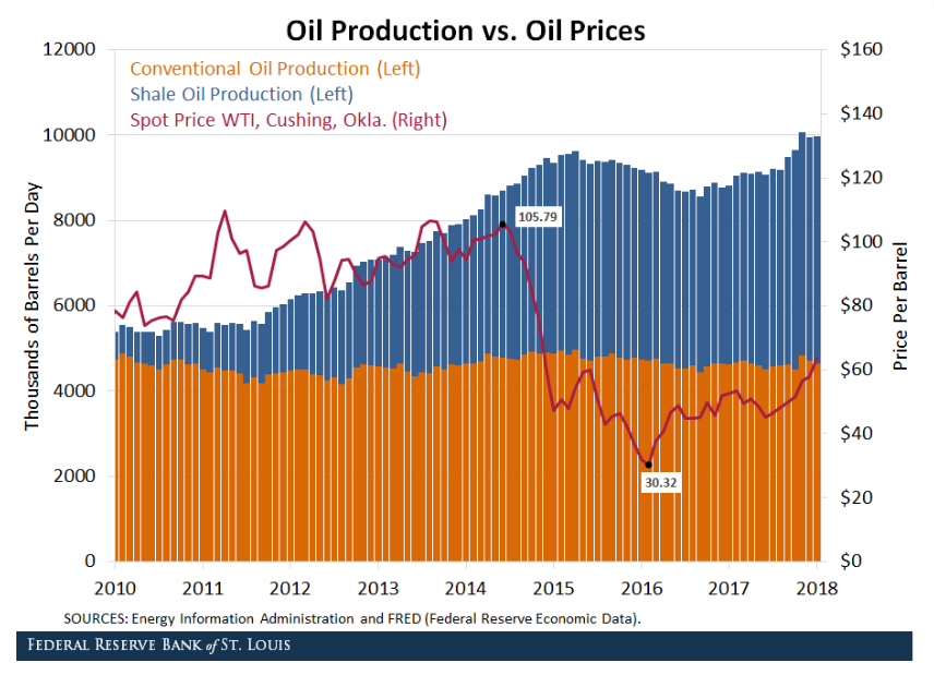 5. 2014년 이후 급속히 늘어난 셰일 오일 생산량 증가로 인해 국제 유가는 급격히 안정화되기 시작함.