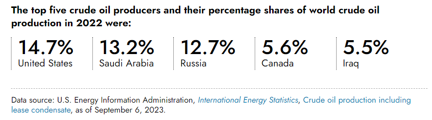 2. 22년 기준 전세계의 석유 생산량의 약 15%를 미국에서 생산중임
